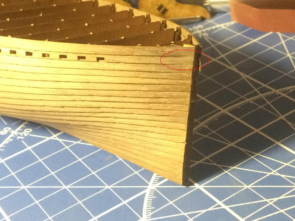В носовой части всё сошлось! А вот на корме примерно 3-я и 4-я рейки оказались чуть уже, но это легко решилось установкой небольшого клинышка!