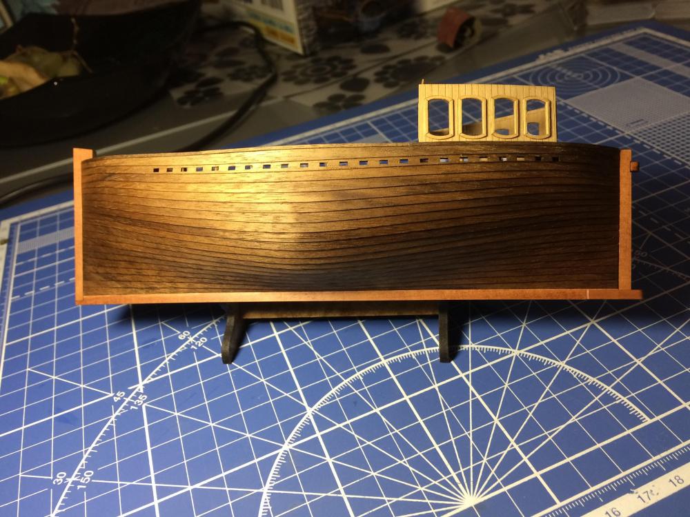 Клинкерная обшивка довольно легко собирается — привыкаешь буквально после третьей рейки :) Сразу замечу, что я практически полностью счищаю нагар от лазера; из-за этого детали уменьшаются в размерах. На таком мелком масштабе это бывает значительно и может привести к нестыковке :( Здесь главное - не перестараться.